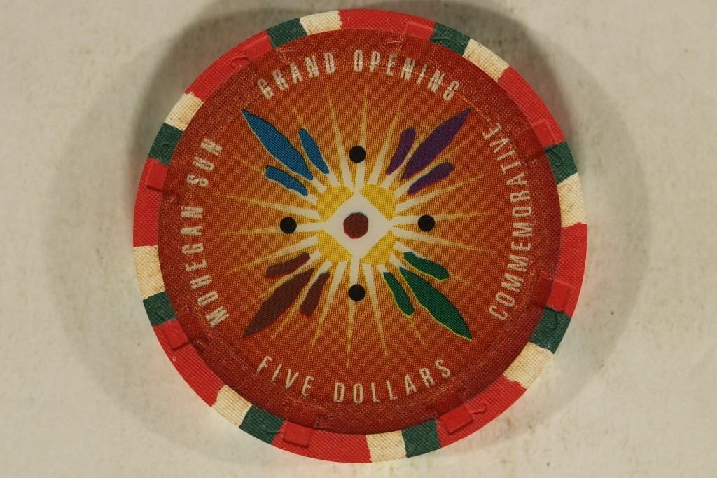 $5 MOHEGAN SUN CASINO CHIP. 1996 GRAND OPENING