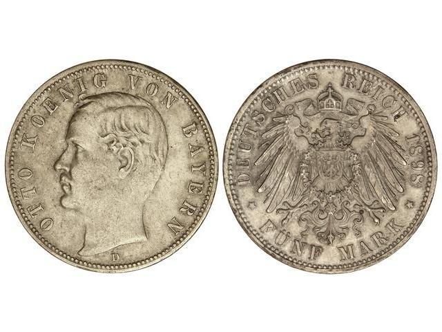5 Marcos. 1898-D. OTTO. BAVIERA. AR. Pátina. MBC+/EBC-.