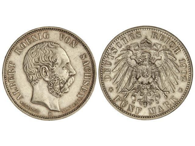 5 Marcos. - 1902-E. - ALBERTO I. - SAJONIA. - AR. (Leves golpecitos). KM-1246. EBC-/EBC. - -