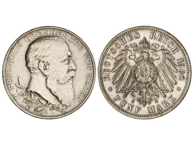 5 Marcos. 1902. FEDERICO I. BADEN. AR. 50 años de reinado. KM-273. EBC-.