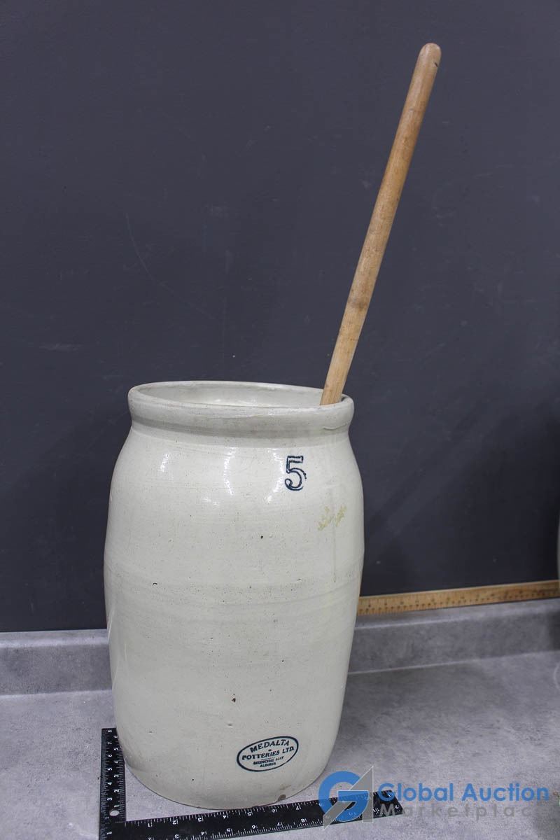 **#5 Medalta Potteries Butter Churn w/Plunger