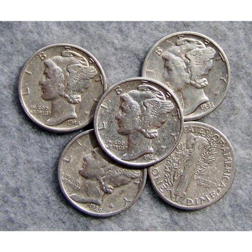 5 Mercury Silver Dimes