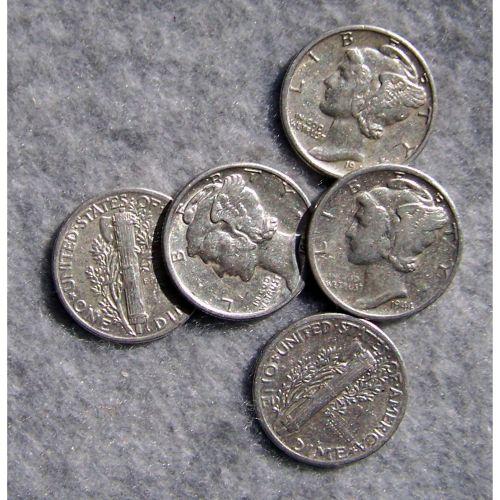 5 Mercury Silver Dimes
