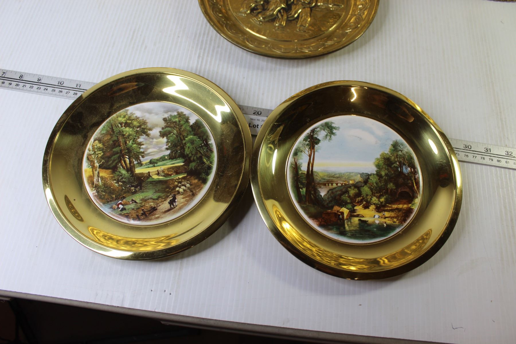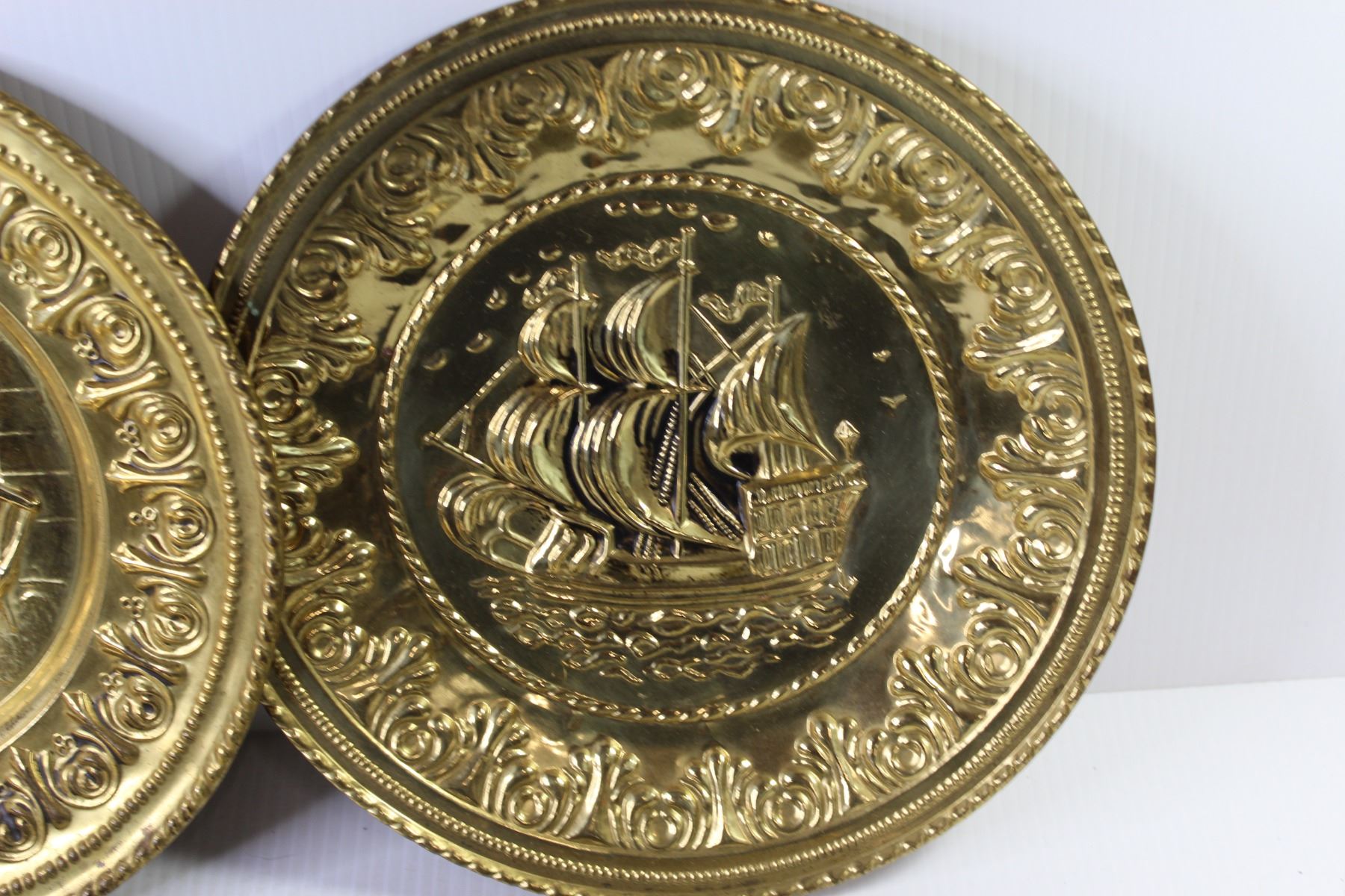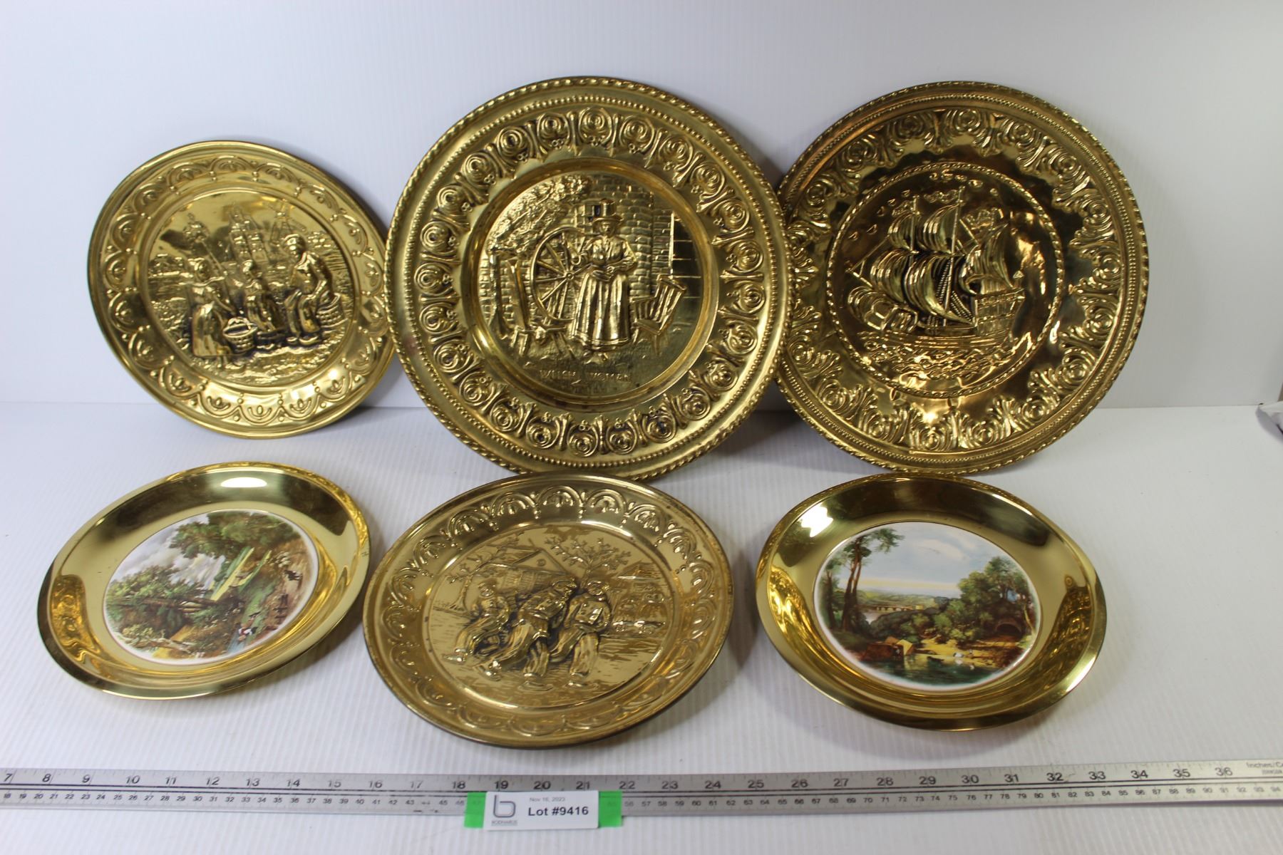 (5) Metal Embossed Plates - (2) Brass Plates w/Printed Tile Plates