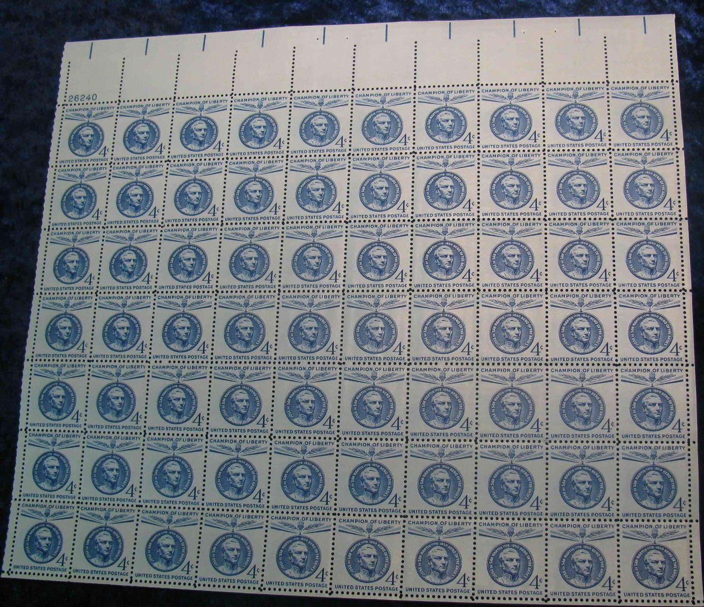 5. Mint Sheet of .04c "Champion of Liberty" "1778-1859 Jose de San Martin Hero of the Andes" Stamps. (Total face value $2.80)