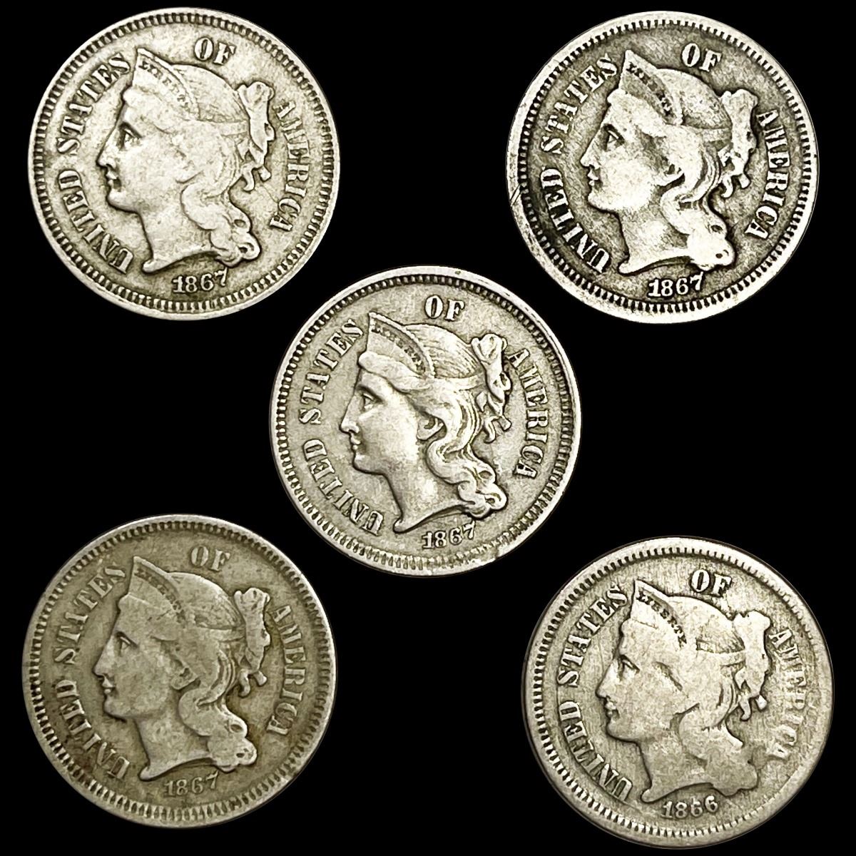 (5) Misc 3 Cents LIGHTLY CIRCULATED