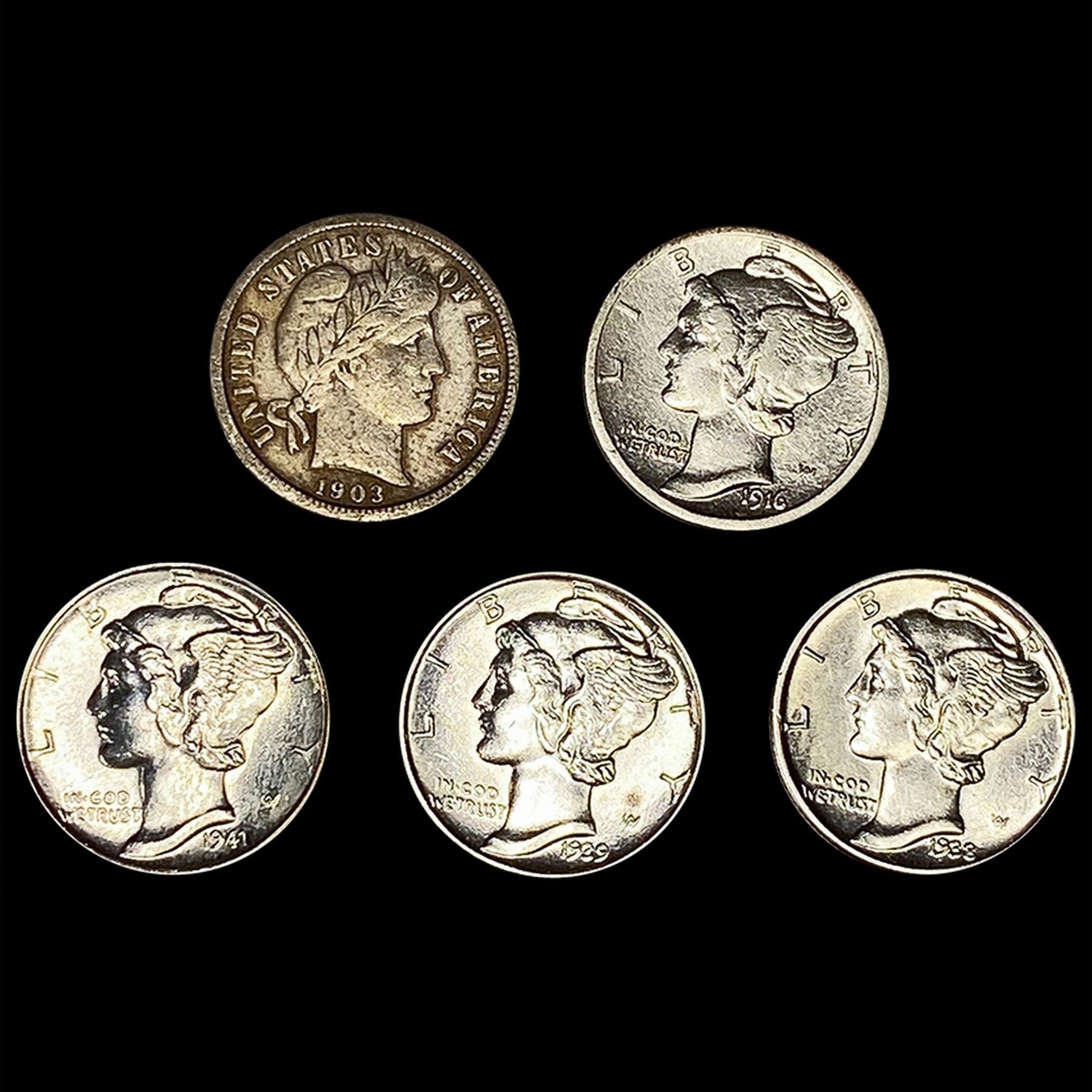 (5) Misc Dimes (1903, 1916, 1938, 1939, 1941) HIG