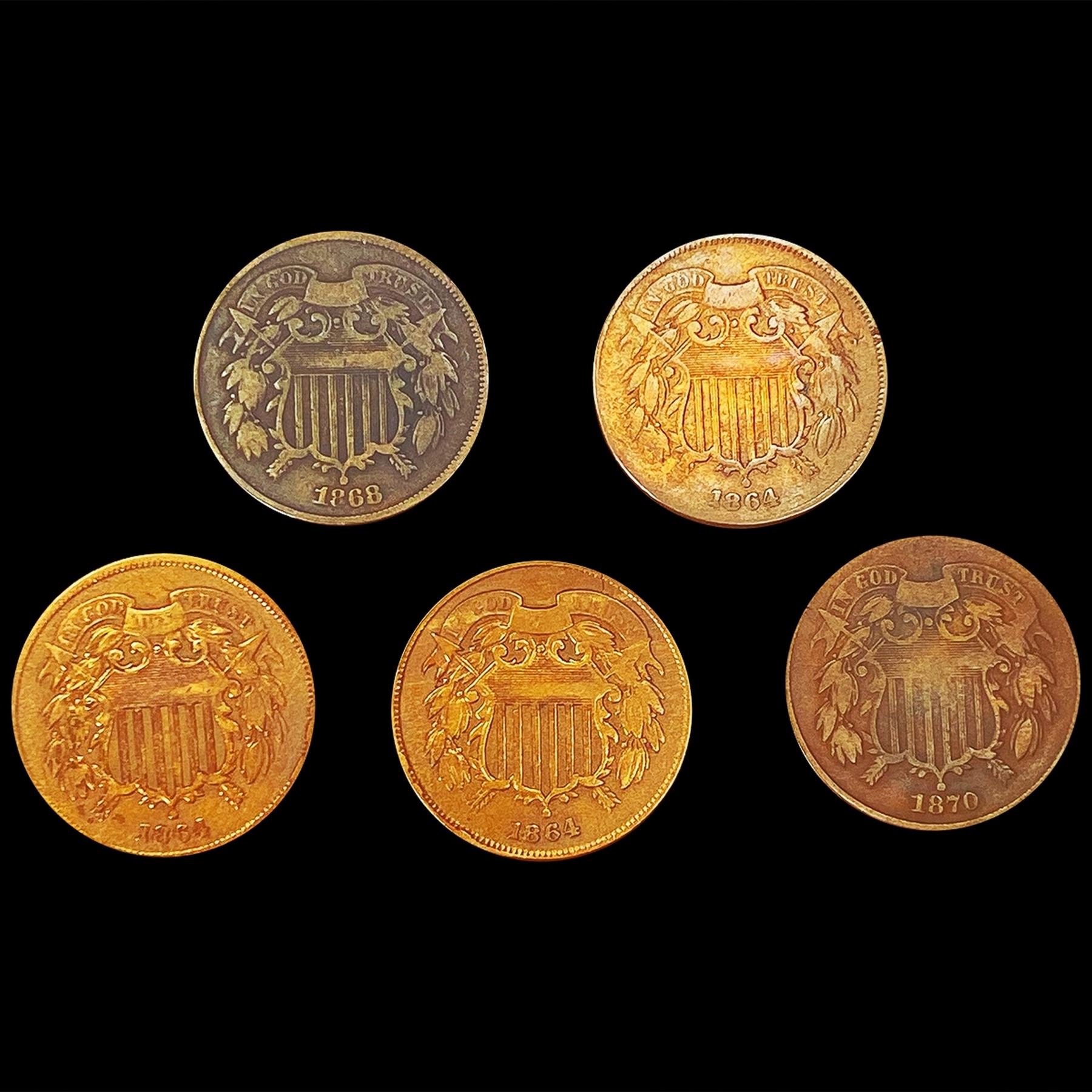 (5) Misc Two Cents ((3) 1864, 1868, 1870) HIGH GR