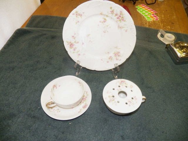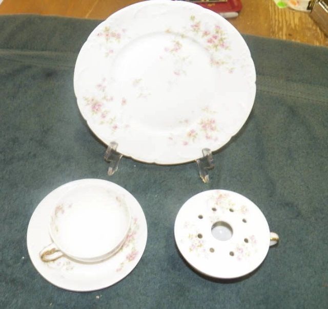 5 pcs .Theodore Haviland Limoges Pink Rose Scallop 2 cups , 1 saucer , 1sandwich plate , 1 tea steamer