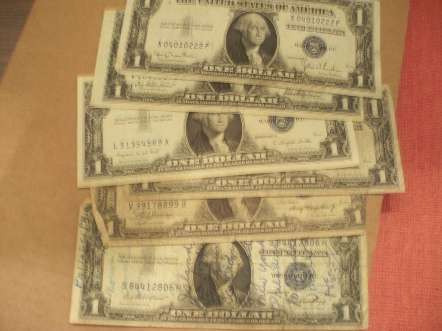 5 Mixed Date $1 Silver Certificates