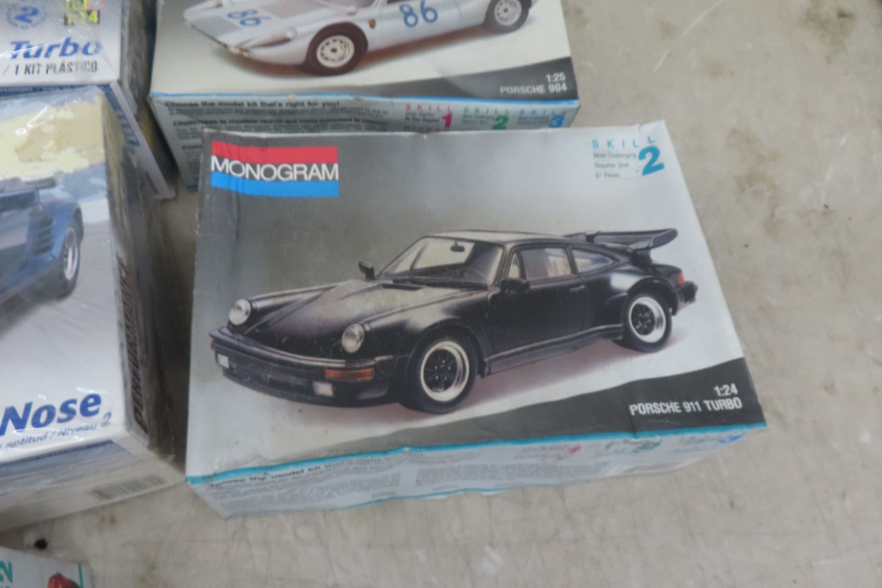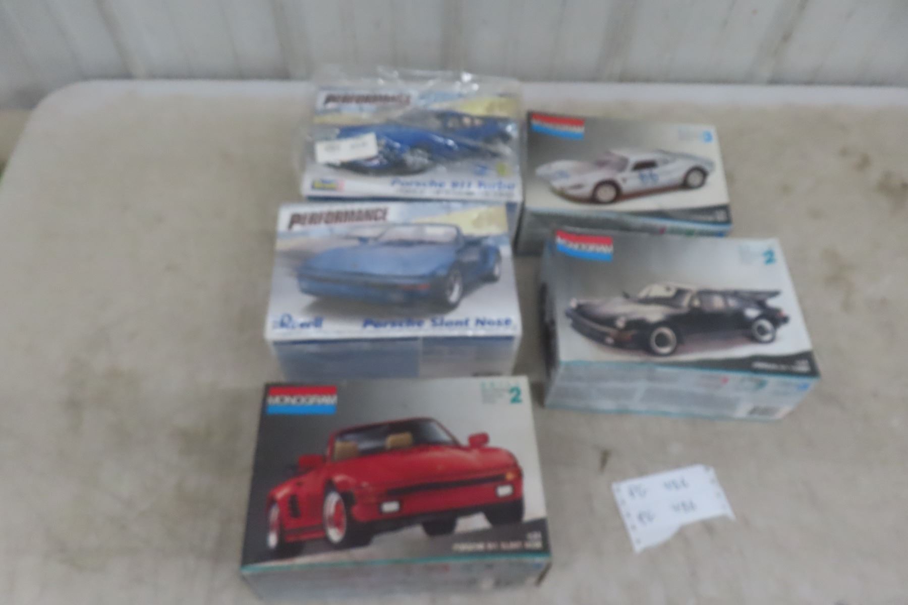 5 Model Cars 1:24 Scale Monogram, Revell, Porsche