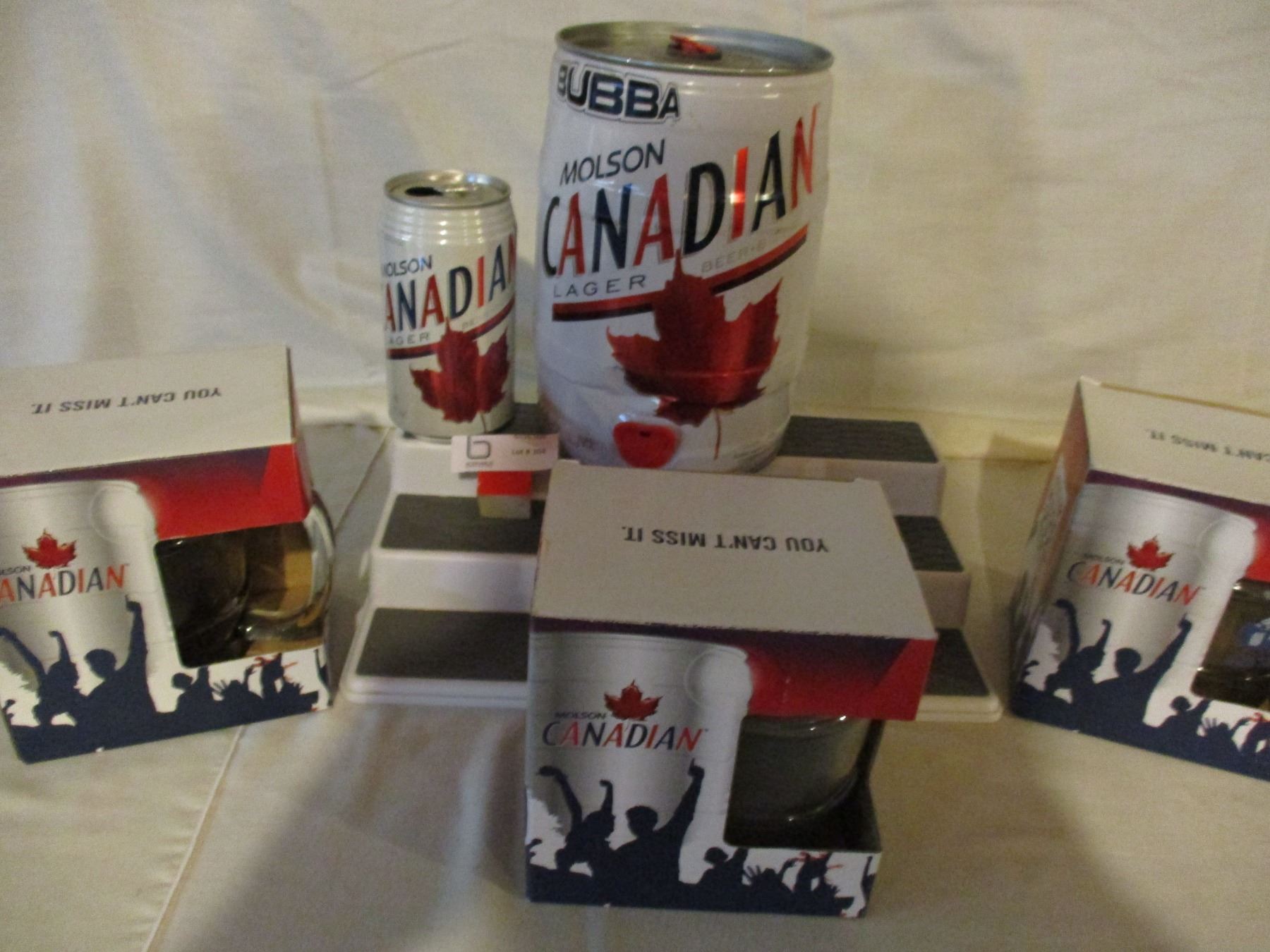 5 Molson Canadian Collector Beer Mugs and Bubba Cans