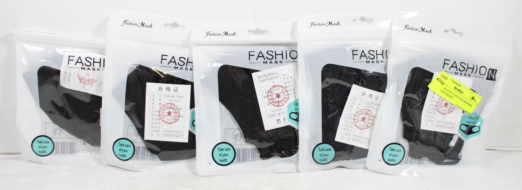 5 NEW BLACK CLOTH FACEMASKS W/FILTER POCKET
