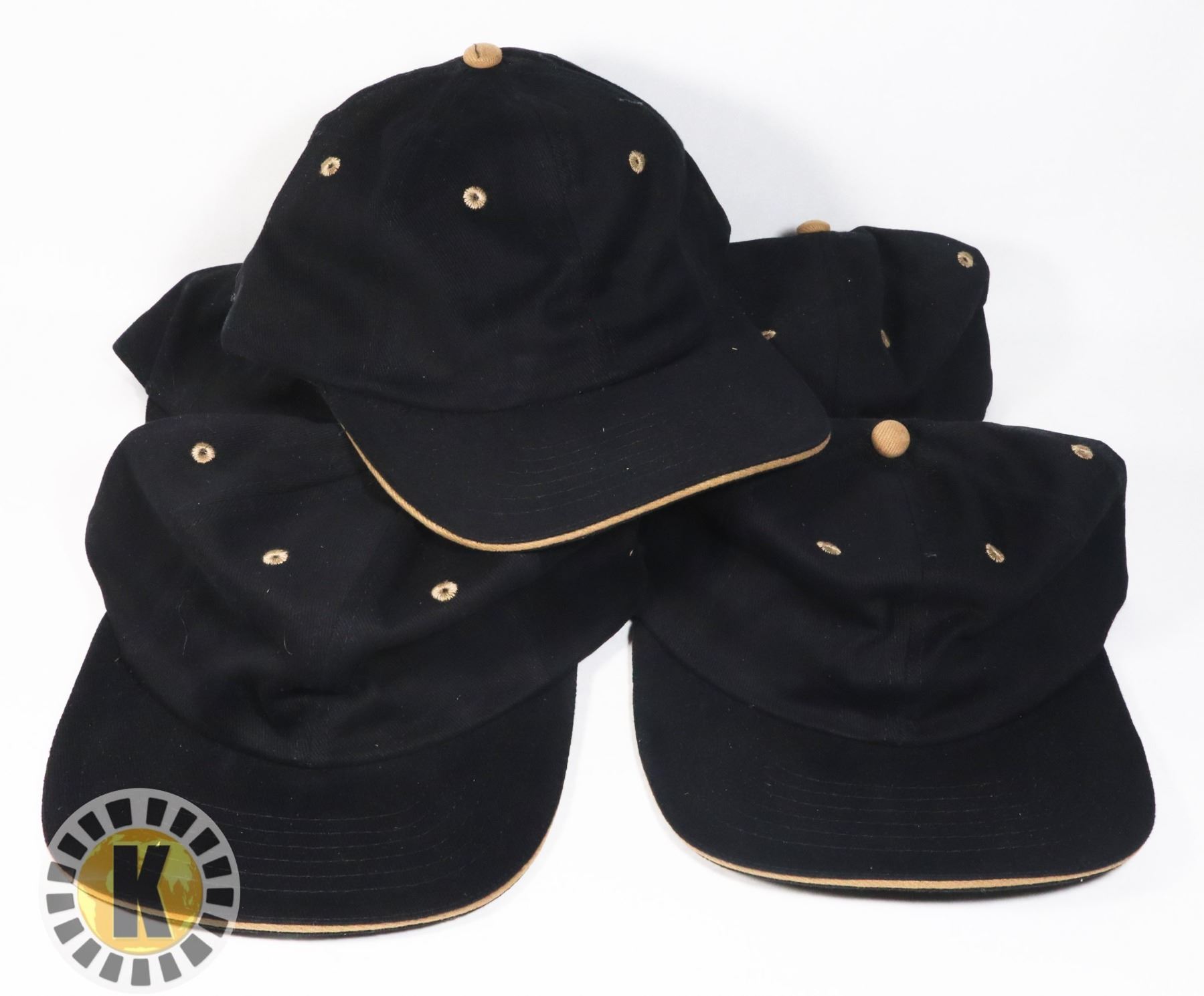 5 NEW BLACK WITH BROWN TRIM ADJUSTABLE SIZE HATS