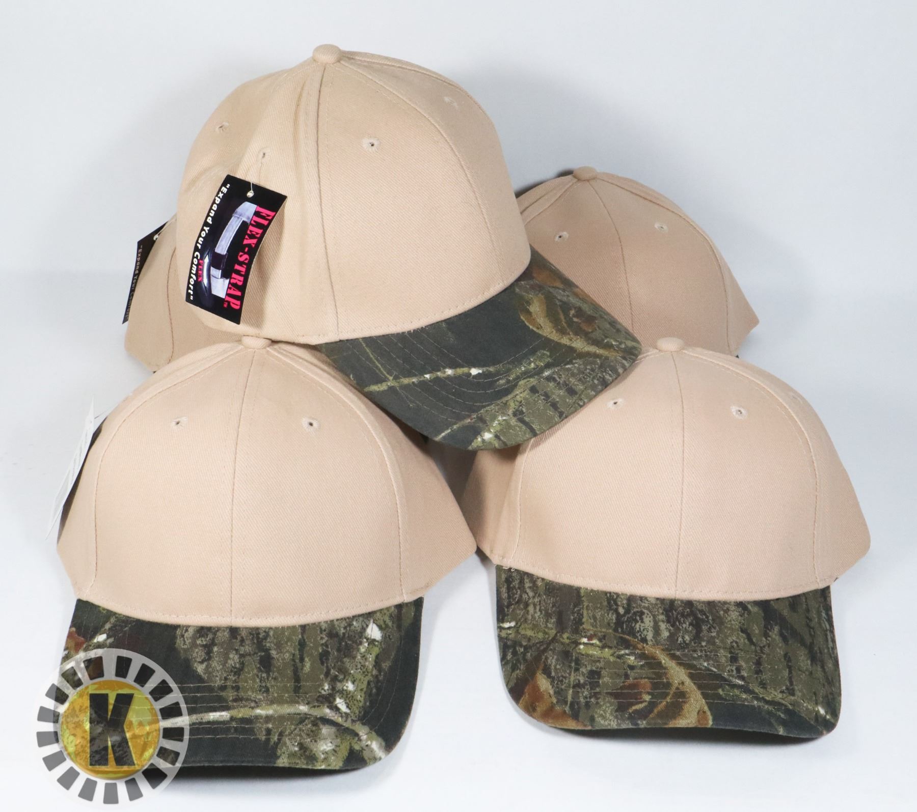 5 NEW TAN WITH CAMO BRIM ADJUSTABLE SIZE HATS