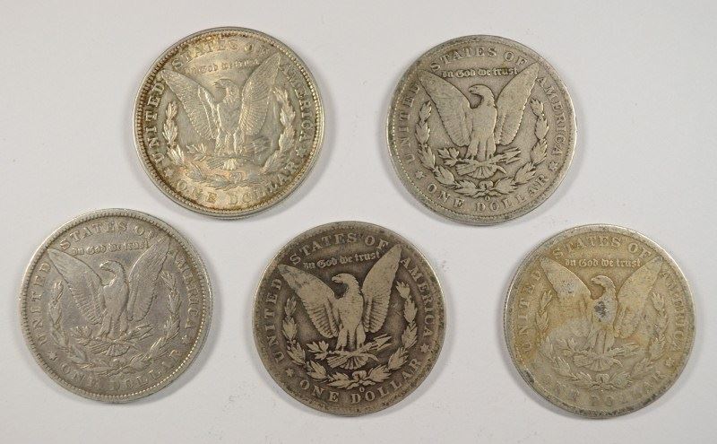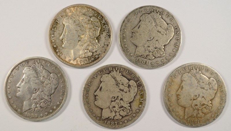 ( 5 NICE) CIRC. MORGAN SILVER DOLLARS: 1881-O, 1882-O, 1887-O, 1901-O & 1921