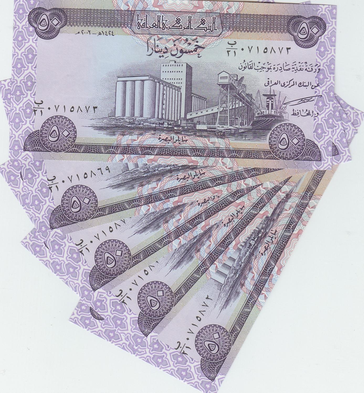 5 NOTES 50 IRAQI DINAR UNCIRCULATED