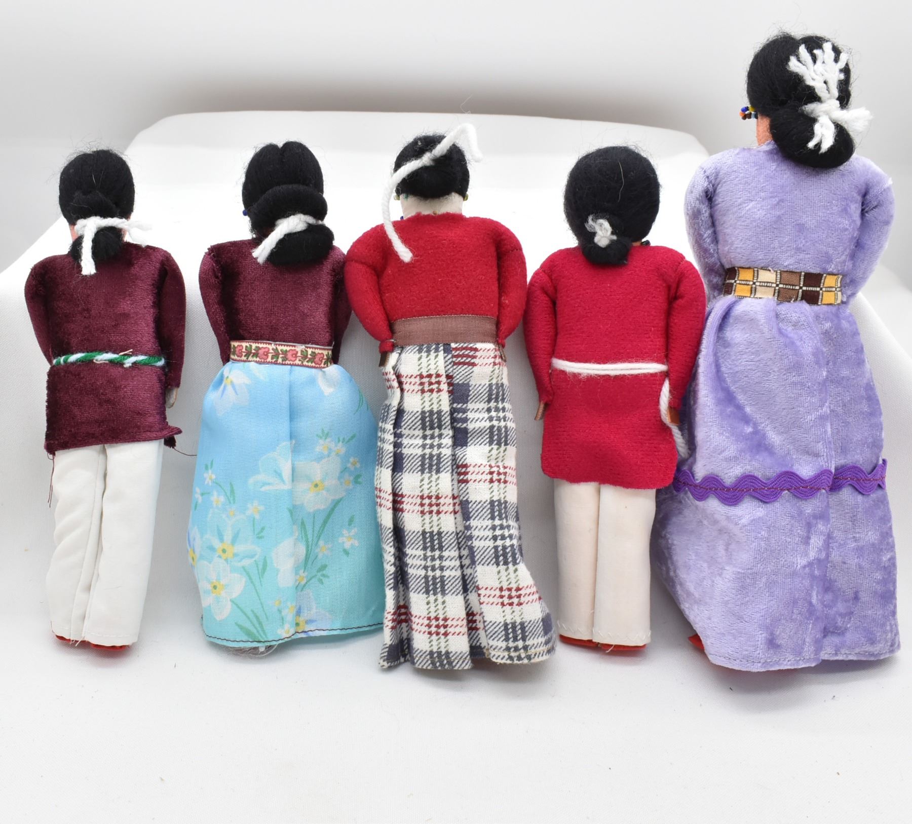 5 Native American Navajo Cloth Dolls by Frederick Jim, longest measures 9''L