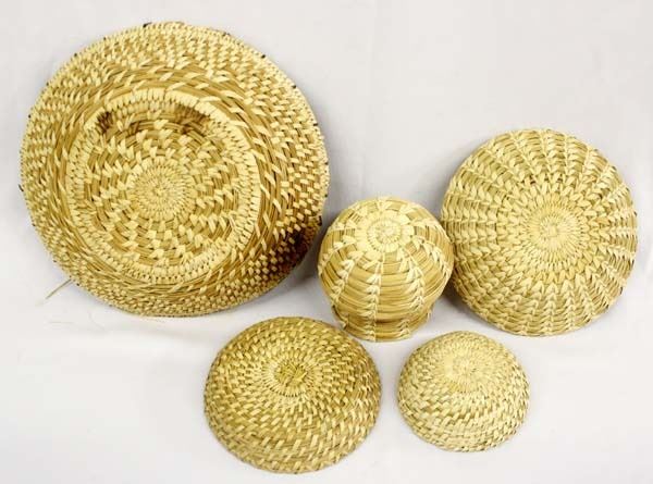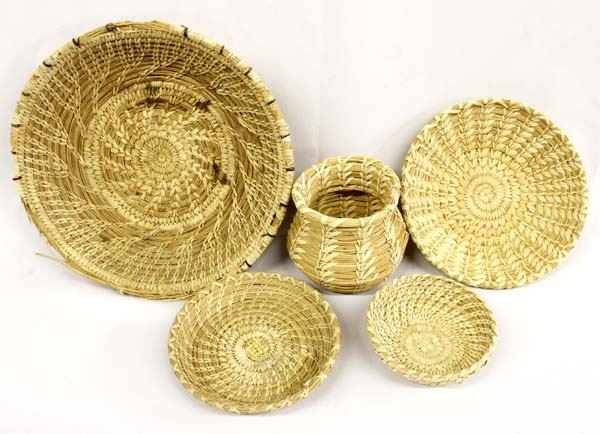 Collection of 5 Native American Tohono O'odham Baskets, largest measures 3.5'' x 12''D