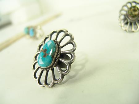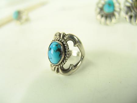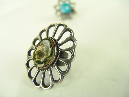 Circa 1970-1980s, Collection of five classic sand cast Navajo turquoise and silver rings, all in very good/excellent condition. Various
