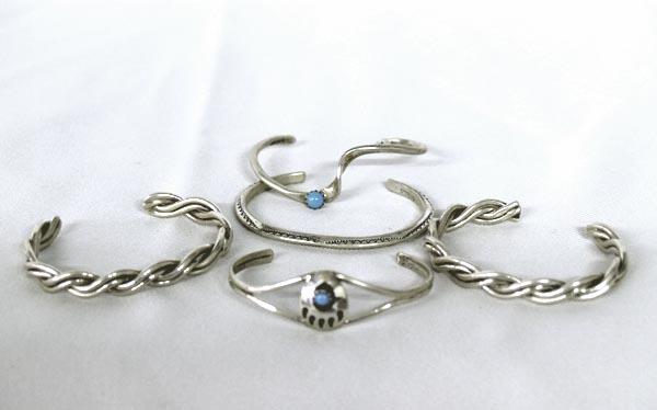 5 Navajo Silver Child's Bracelets, largest measures approx. 4.25'' x 2/8''. SHI $15.