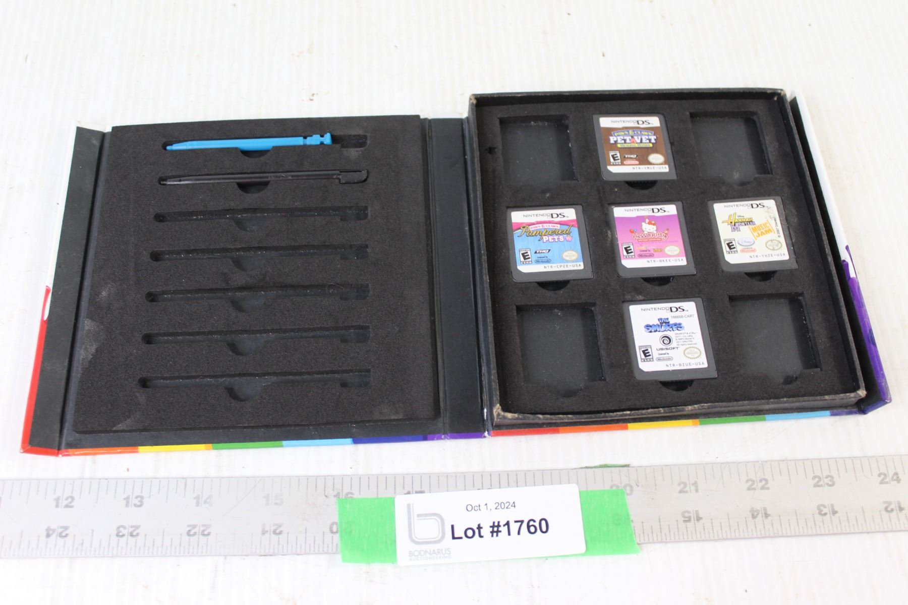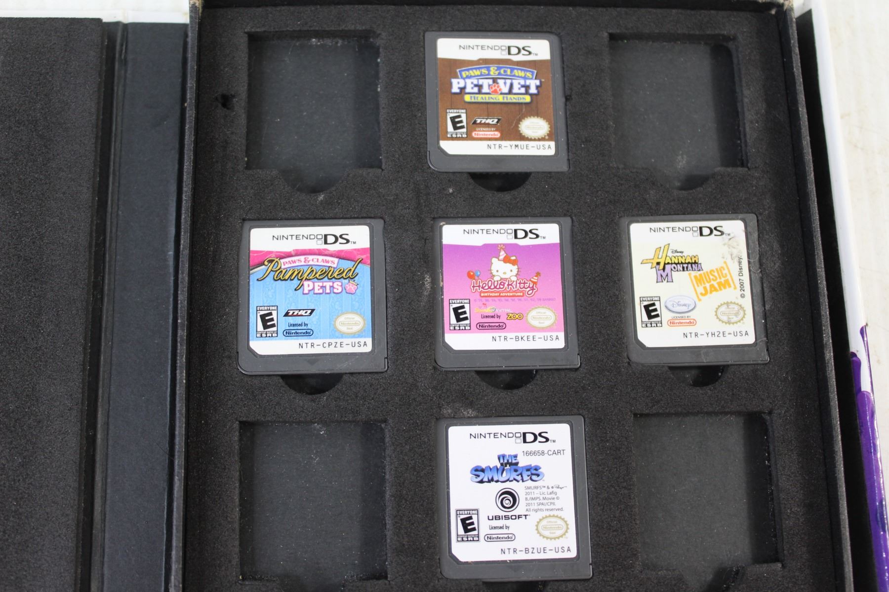 (5) Nintendo DS Video Games - Smurfs, Hello Kitty, pet Vet, (2) Stylus, Case