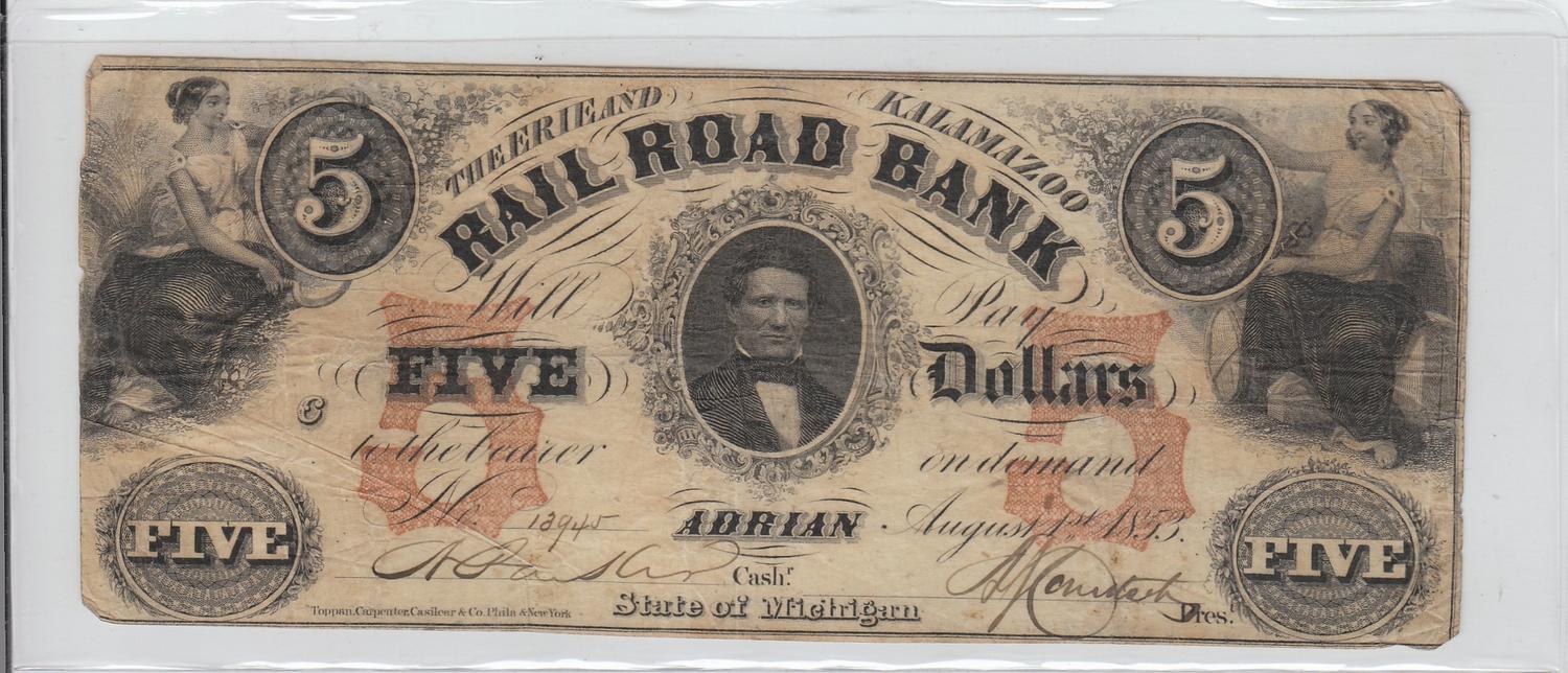 $5 OBSOLETE ADRIAN MICHIGAN 1853 STRONG DETAILS