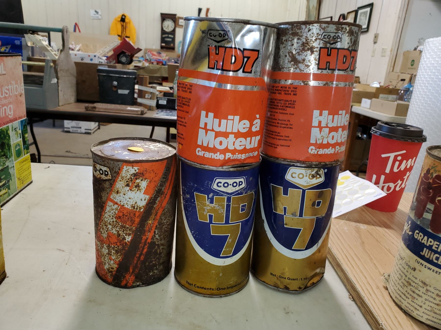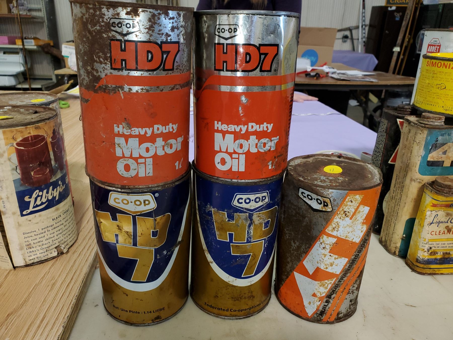 (5) OIL TINS (4 EMPTY CO-OP, 1 ATF FULL)