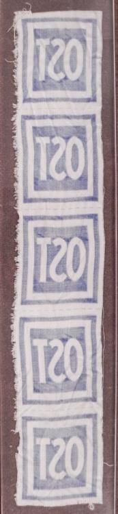 STRIP OF 5 ORIGINAL NAZI "OST" OCCUPIED RUSSIAN "EASTERN FRONT" PATCHESHARD TO COME BY "OST" PATCHES--UN-USED--UN-CUT VET PICK-UP