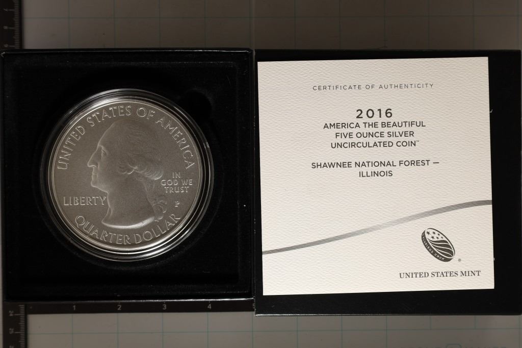 2016-P SHAWNEE NATIONAL FOREST ILLINOIS QUARTER, IN ORIGINAL US MINT PACKAGING WITH CERTIFICATE AND IN HARD PLASTIC CAPSULE. THIS IS THE BURNISHED UNC FINISH.
