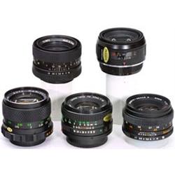 1) "Mamiya Sekor SX 1,4/50", original verpackt. - Originally boxed. (1/1) - 2) "Mamiya Sekor E 1,7/50", original verpackt. - Originally boxed. (1/1) - 3) "Olympus AF 1,8/50" (1/1). - 4) "Canon FD 1,8/50", Verpackung, (2/2). - Und: 5) "Rollei Planar 1,8/50", Singapore, Verpackung, (3/4). - € 100/130 - (158/18)