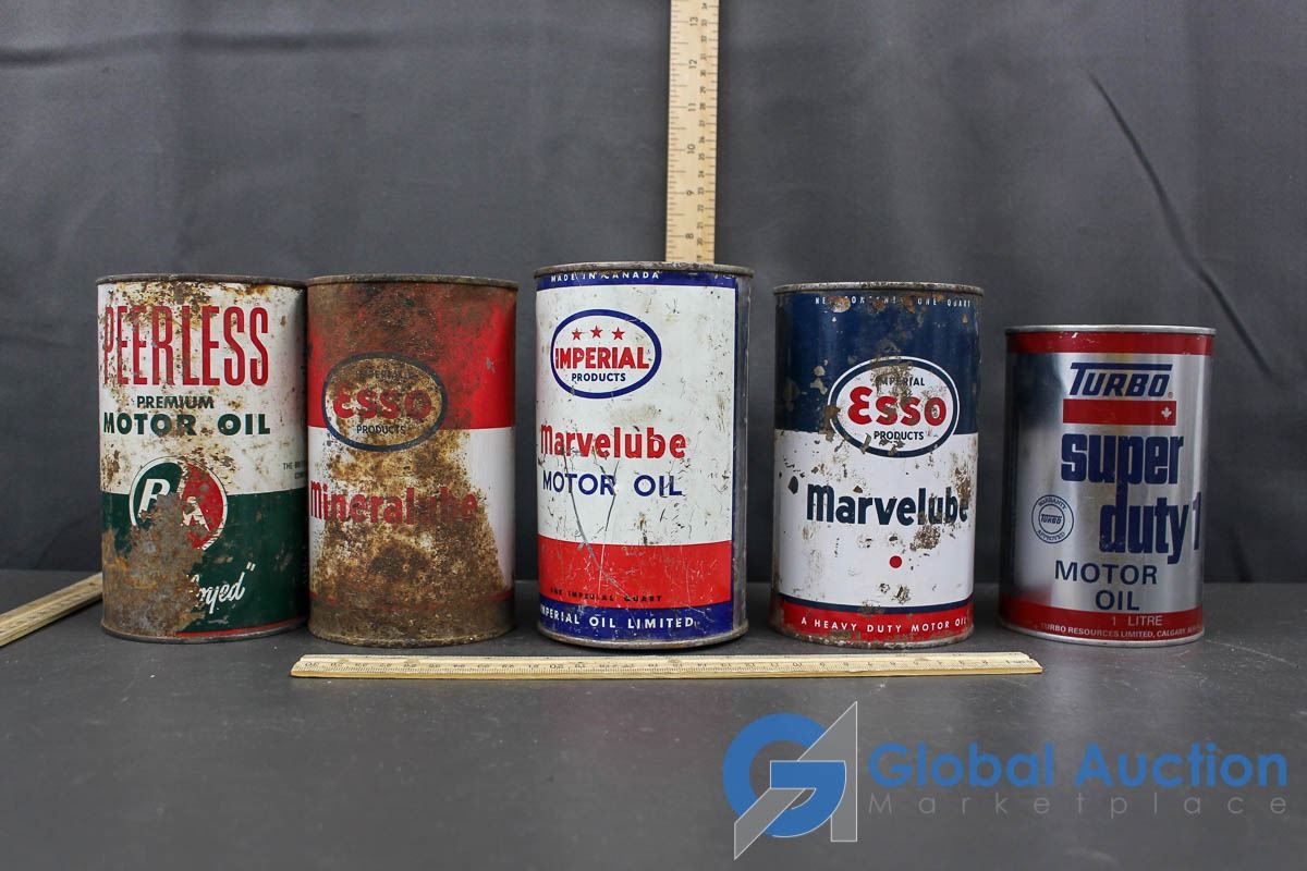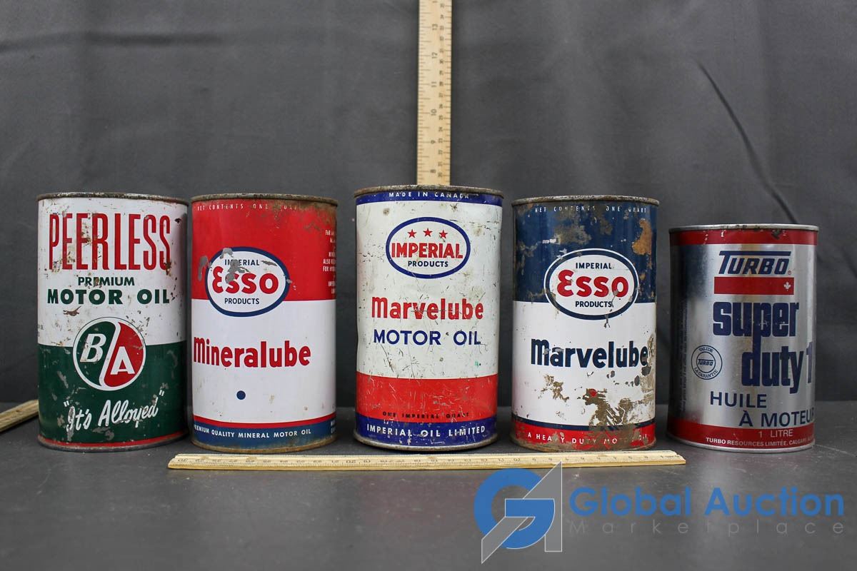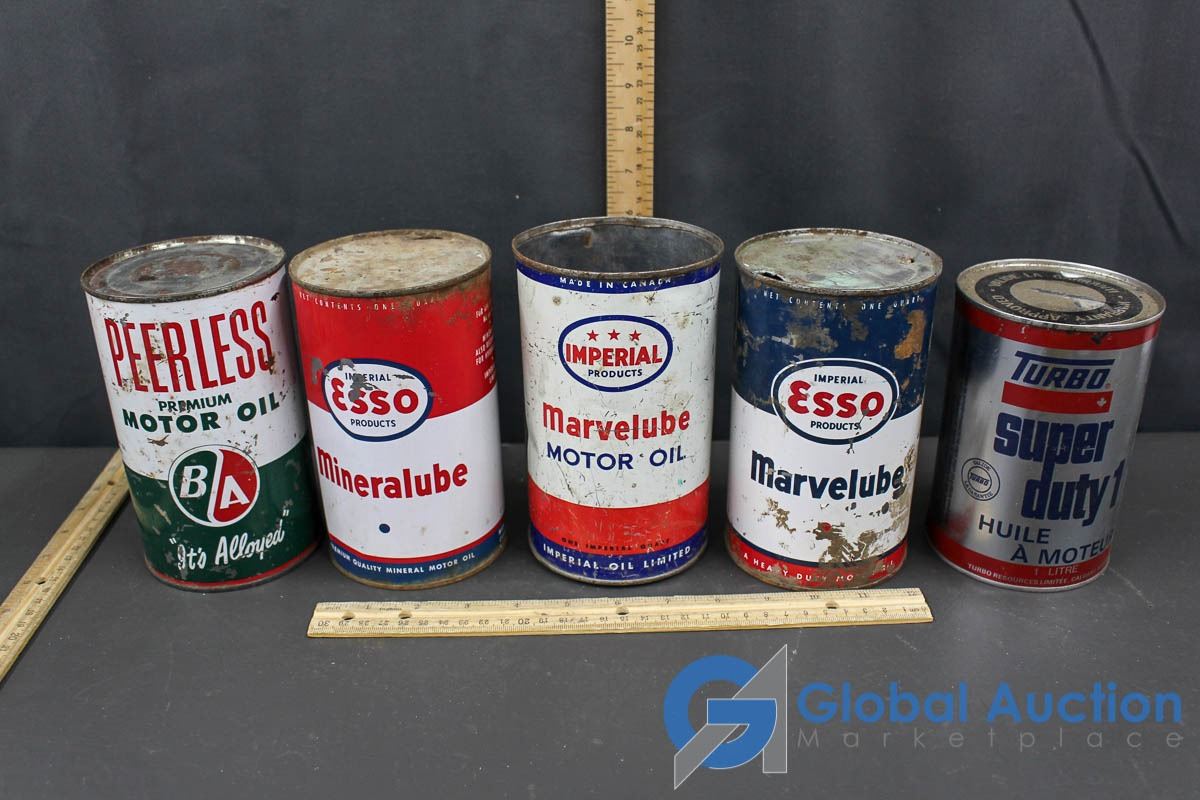 5 Oil Cans Ba, Turbo, Imperial, Esso, etc.