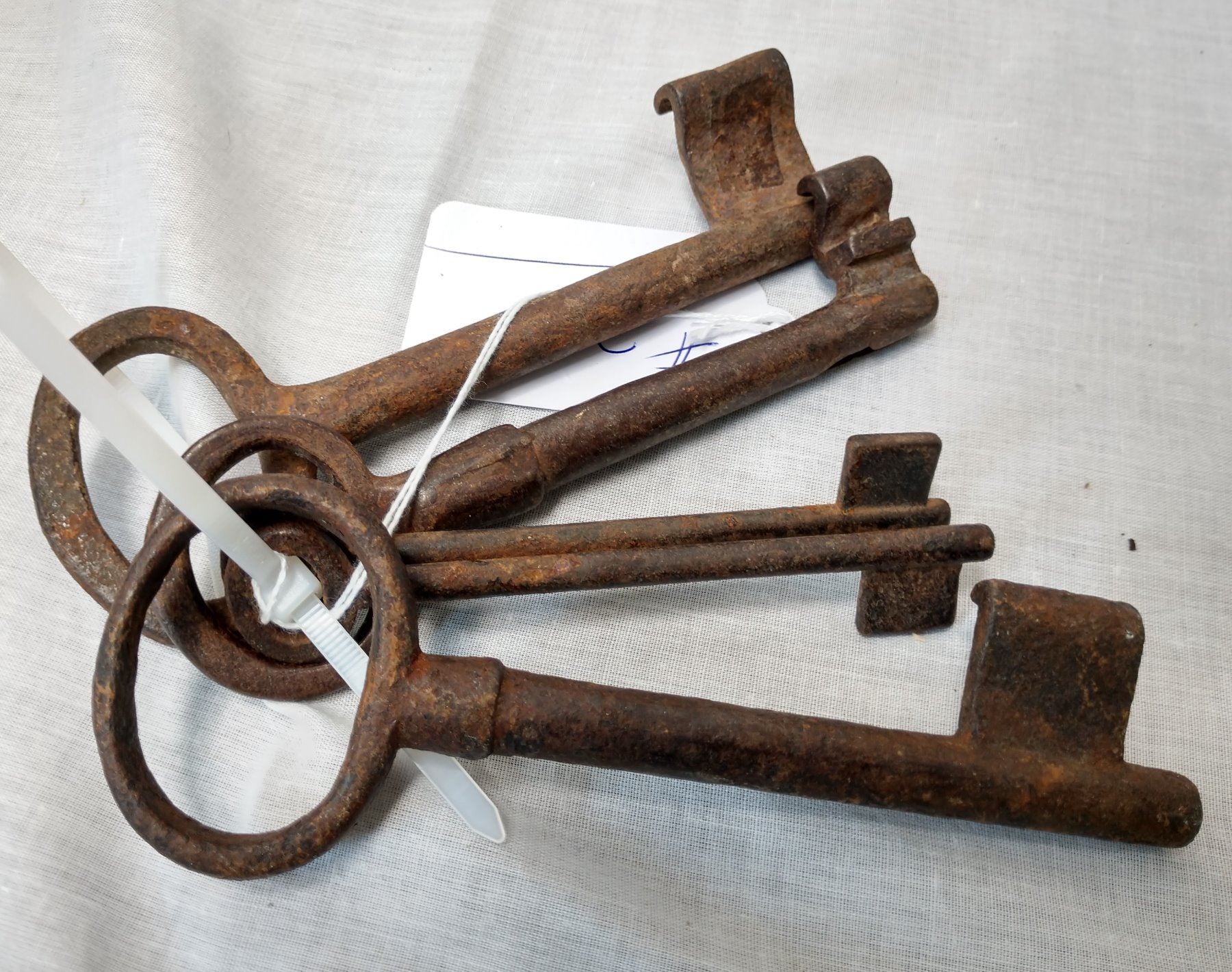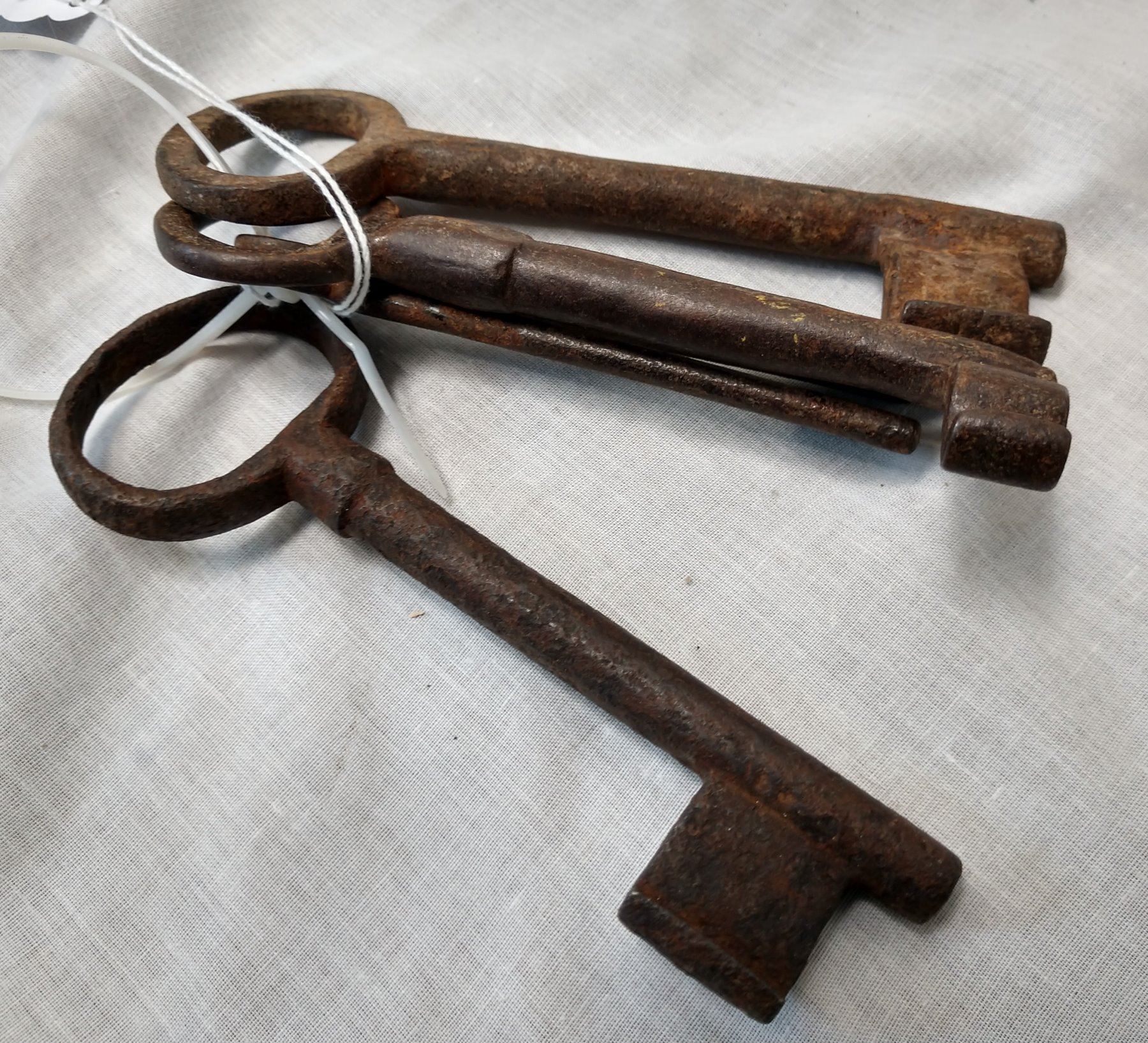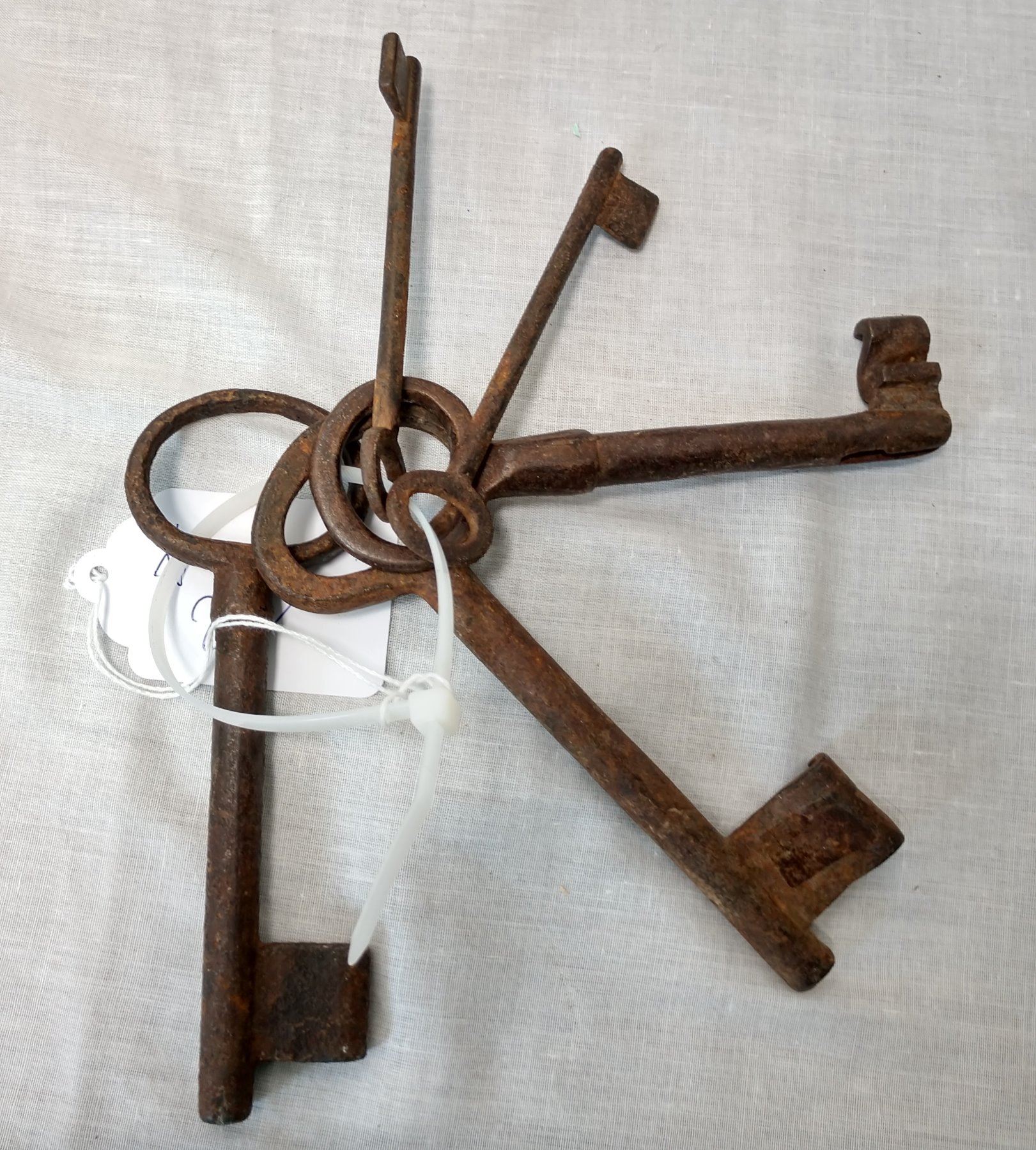 5 Old Castle Keys, c. 100 years old. Made of iron, the items are 6 1/2" and shorter. Mexico. Nice collection. Condition: Rust and wear, see images. Shipping: $15.50 w/insurance and signature.