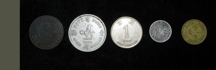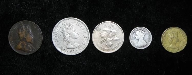Available are 5 Old Coins from Hong Kong. They are:---1904 - 1 Cent--1897 - 10 Cents--1956 - 10 Cents--1960 - 1 Dollar--1998 - 1 Dollar--