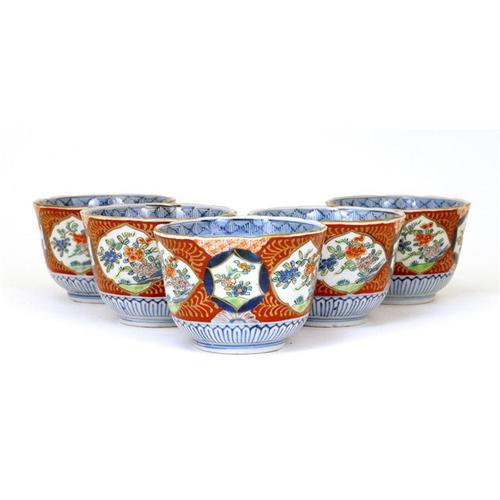 Set of Five Old (1930's) Japanese Imari Teacup with Flower