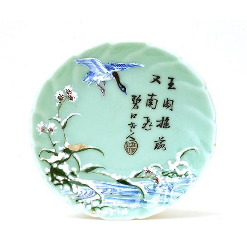 Set of Five Old (1930's) Japanese Studio Celadon Imari Seto Plate with Chirography Signed