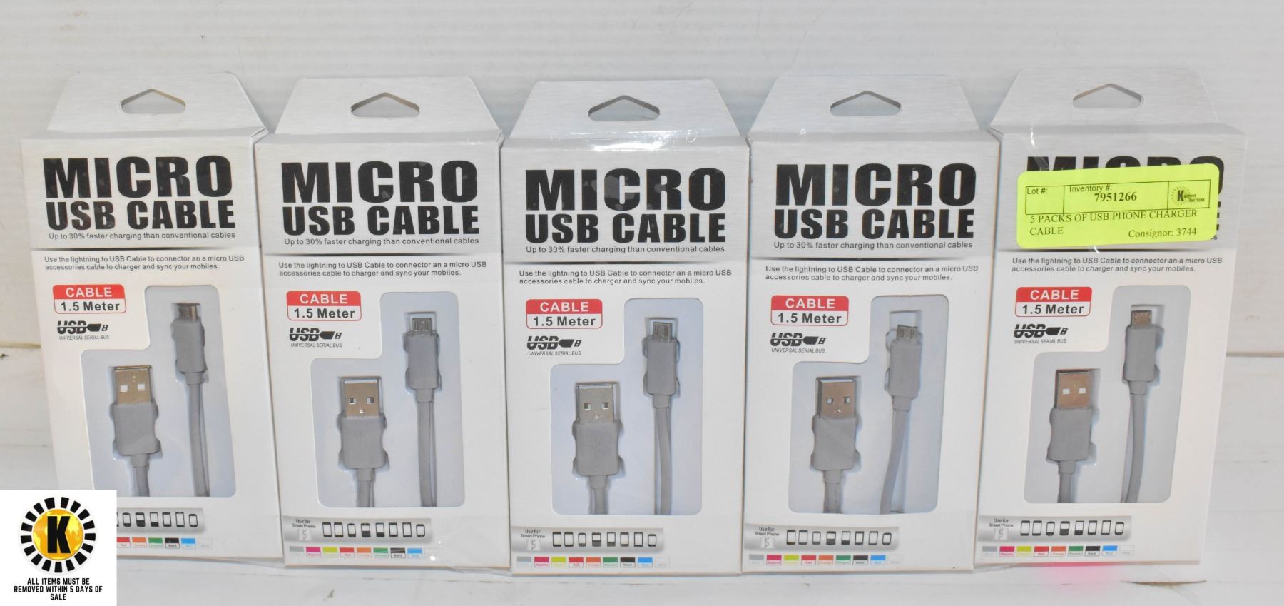 5 PACKS OF USB PHONE CHARGER CABLE