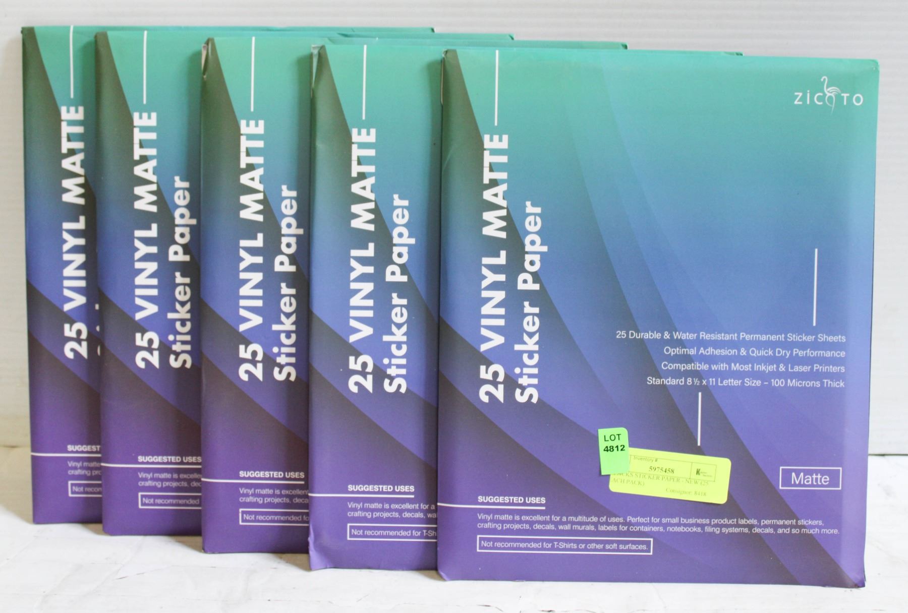 5 PACKS STICKER PAPER - NEW (25 EACH PACK)