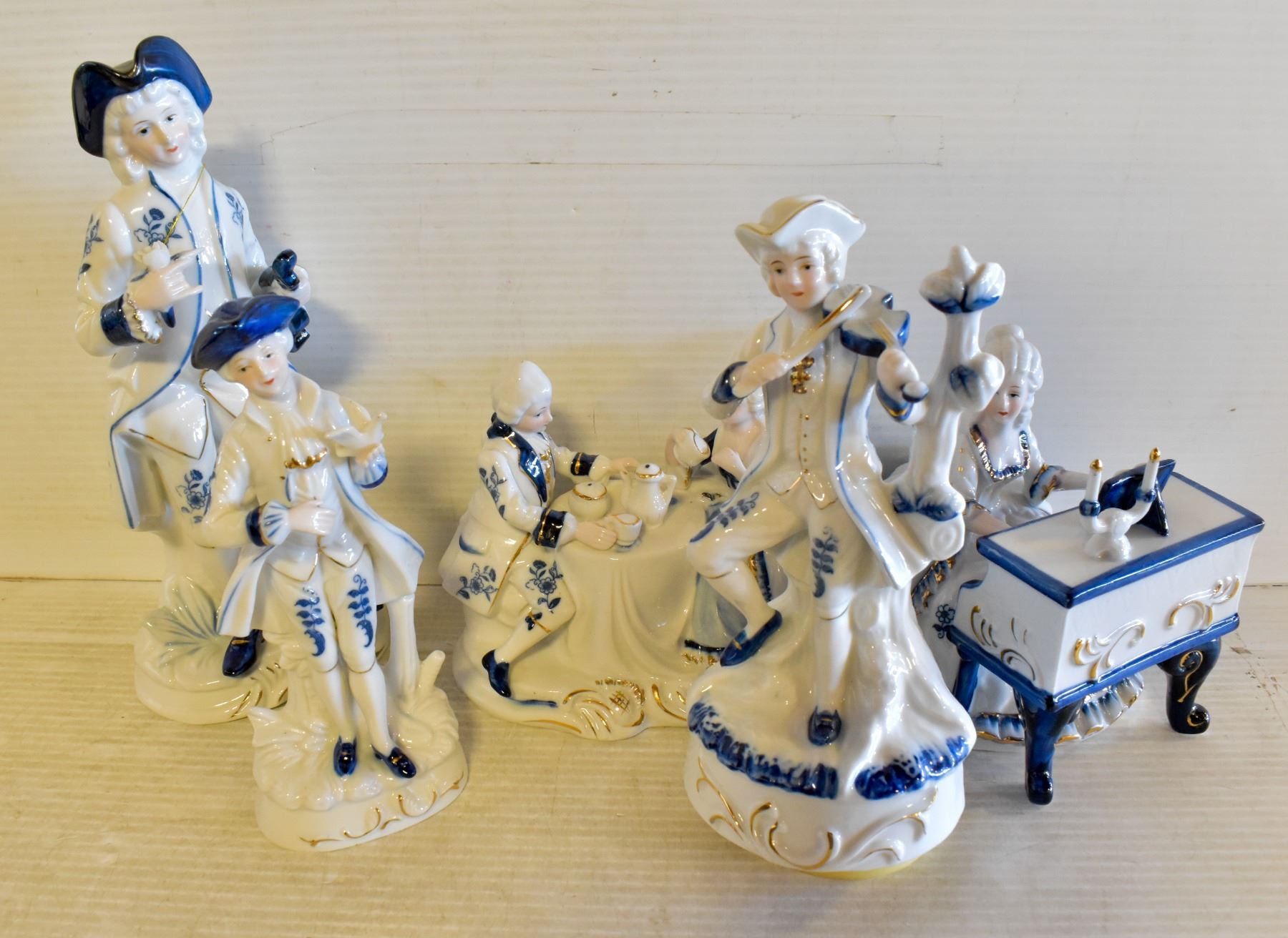5 PC VINTAGE COLONIAL PORCELAIN WIND UP MUSICAL