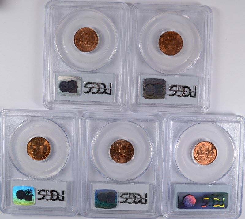 5-PCGS GRADED LINCOLN CENTS, 1947-S, 47-D, 48-S MS-65 RED & 48-D, 50-D MS-66 RED