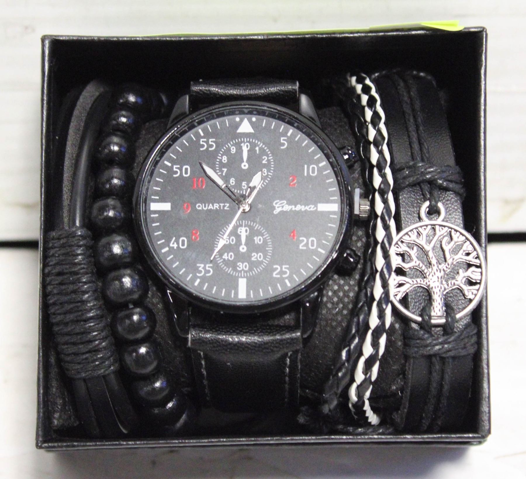 5 PCS BLACK WATCH SET WITH DATE IN BOX