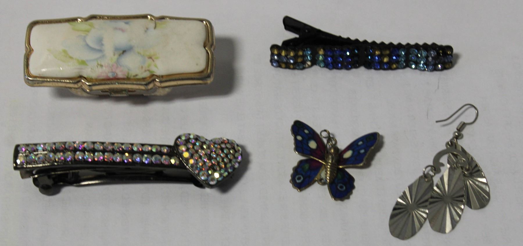 5 PCS. JEWELRY -HAIRCLIPS, BROOCH, EARRINGS