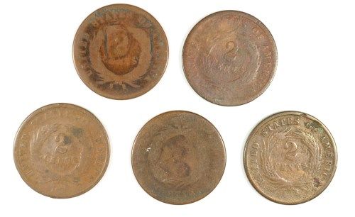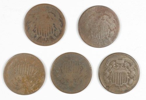 5 PCS LOW GRADE TWO CENT 1871 AND OLDER