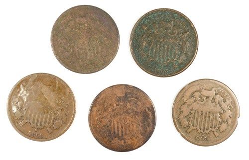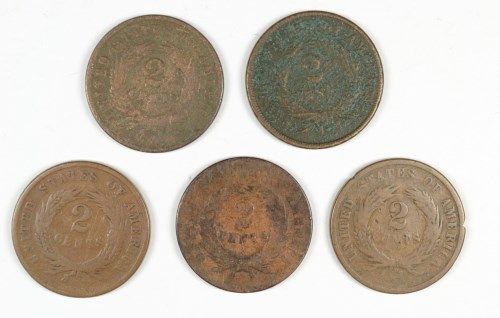 5 PCS TWO CENT LOW GRADES 1871 AND OLDER