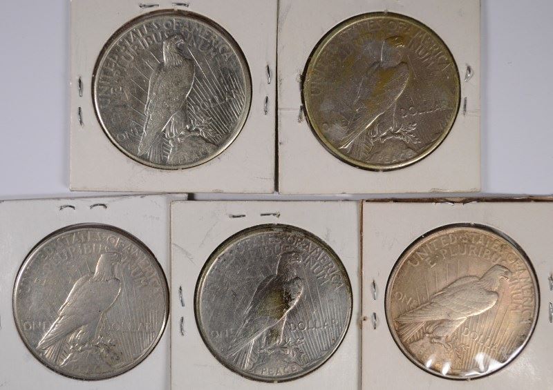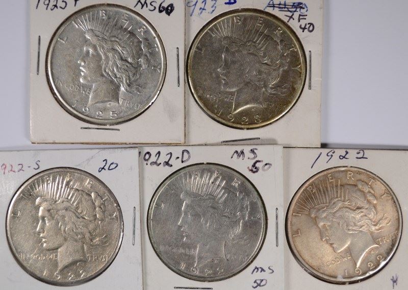 ( 5 ) PEACE SILVER DOLLARS: 1922, 1922-D, 1922-S, 1923-S AND 1925