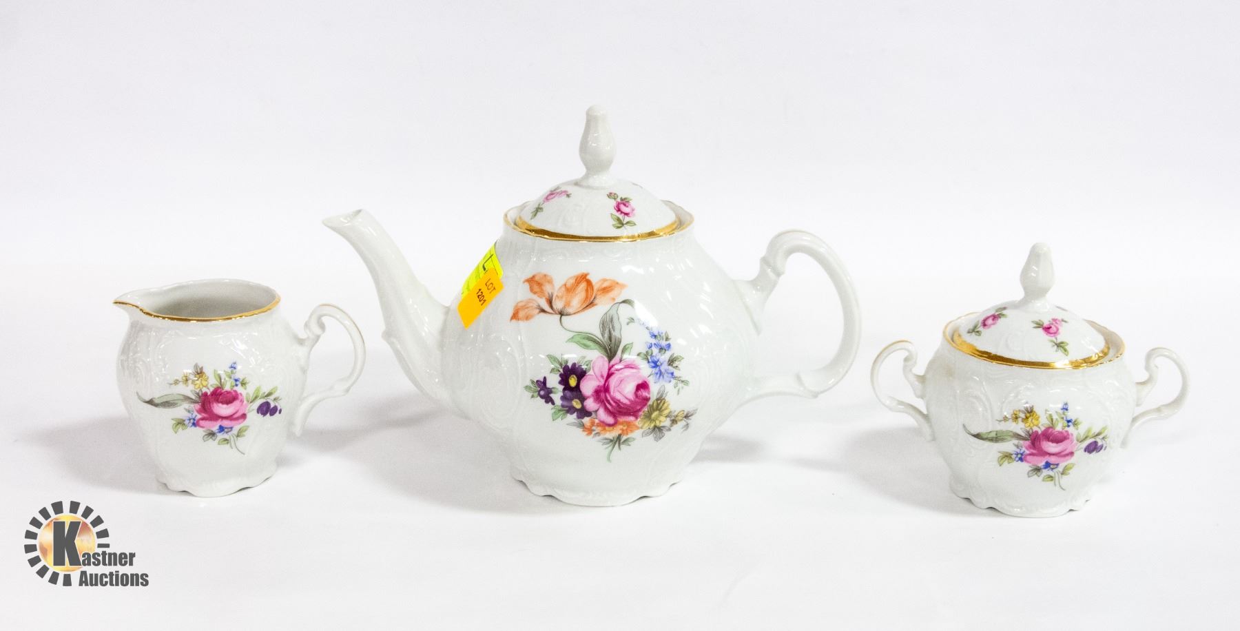 SET- "SONATA" (MADE IN CZECHOSLOVAKIA) - TEA POT WITH LID, SUGAR BOWL WITH LID AND CREAMER **ALL ITEMS MUST BE REMOVED BY 5PM SATURDAY, FEBRUARY 24TH 2024. ALL REMAINING ITEMS WILL BE SUBJECT TO A $6.00 PER DAY STORAGE CHARGE. ANY ITEMS REMAINING AFTER MONDAY, MARCH 11TH, 2023 WILL BE CONSIDERED FORFEITED. NO REFUNDS WILL BE ISSUED FOR FORFEITED ITEMS. TO SCHEDULE A PICK UP APPOINTMENT CLICK HERE