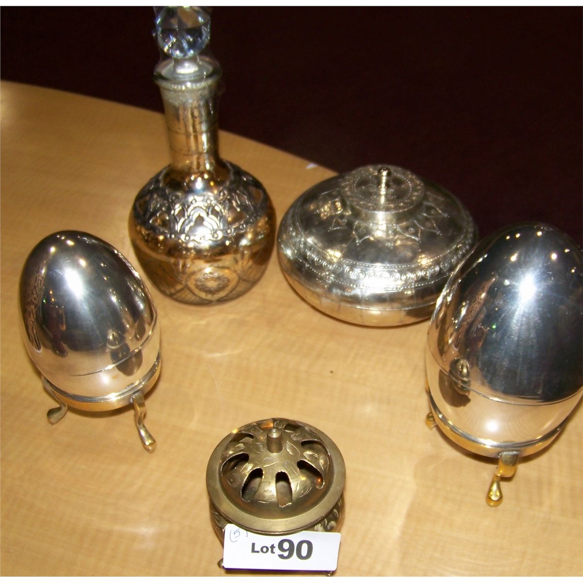 (5) PIECE BRASS & SILVERPLATE DECORATIVE LOT, AS SHOWN