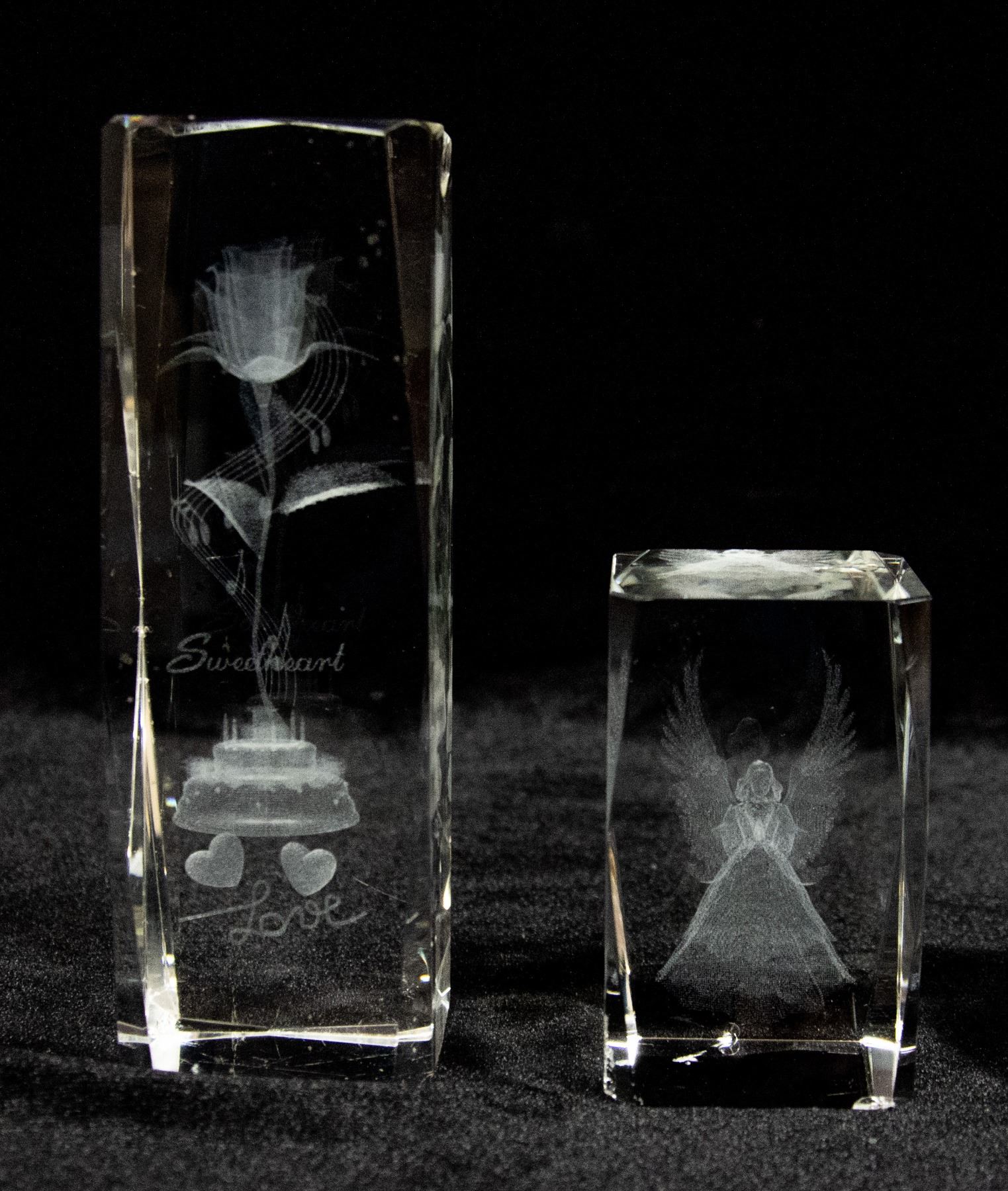 GLASS - ROSE, ANGEL, APPLE, DICE & LARGE DIAMOND CRYSTAL