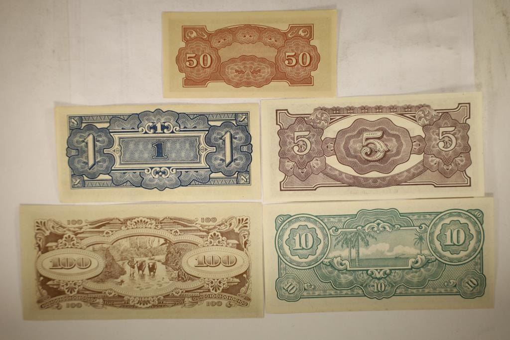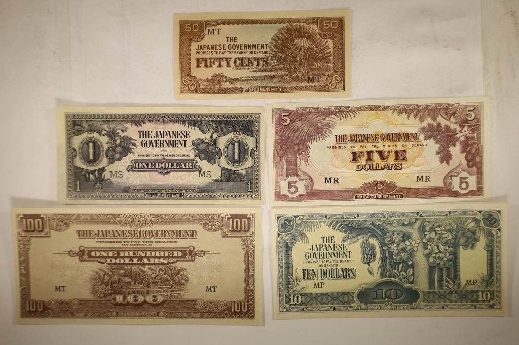 CURRENCY, 50 CENT, $1, $5, $10 AND $100 CRISP UNC