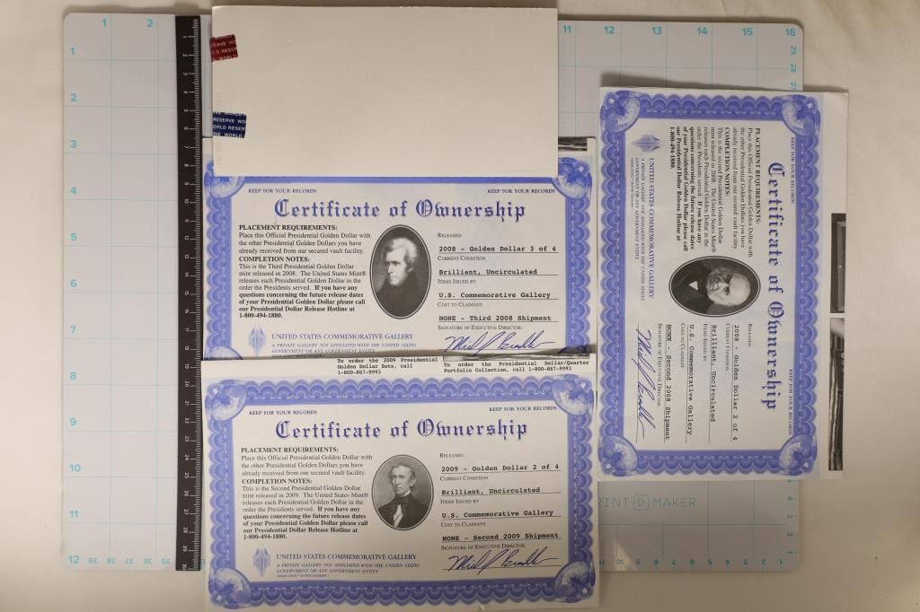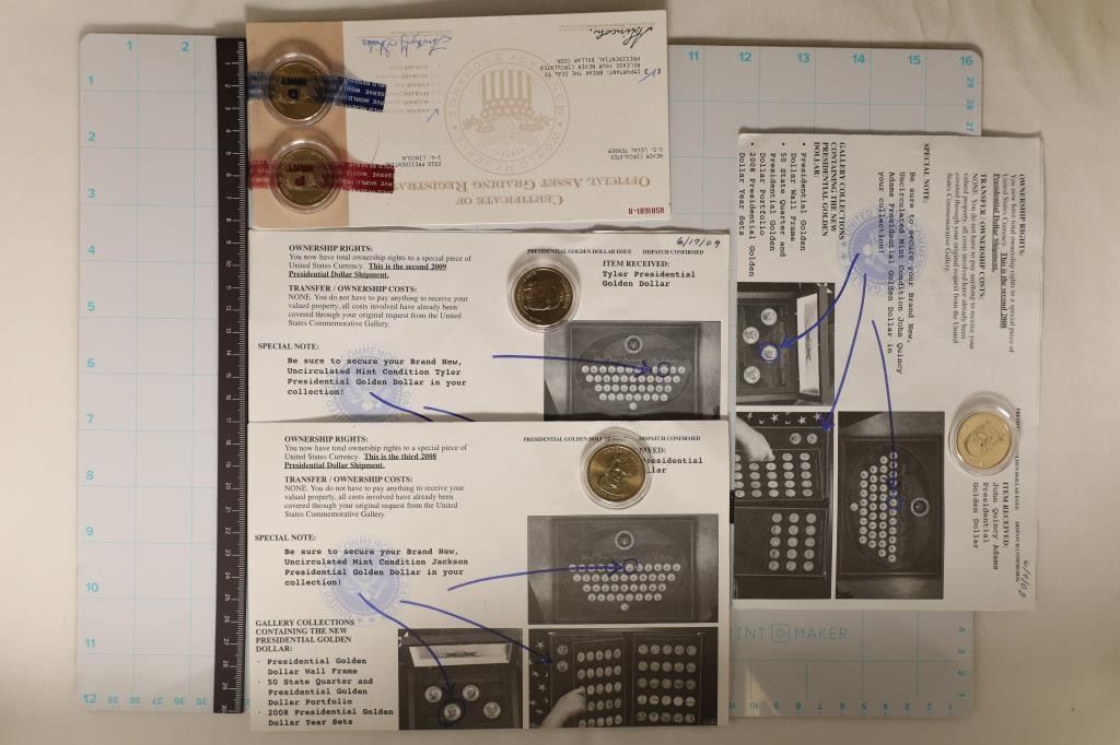 CERTS. 2010- P& D ABRAHAM LINCOLN, 2008 ANDREW JACKSON, 2008 JOHN ADAMS & 2009 JOHN TYLER